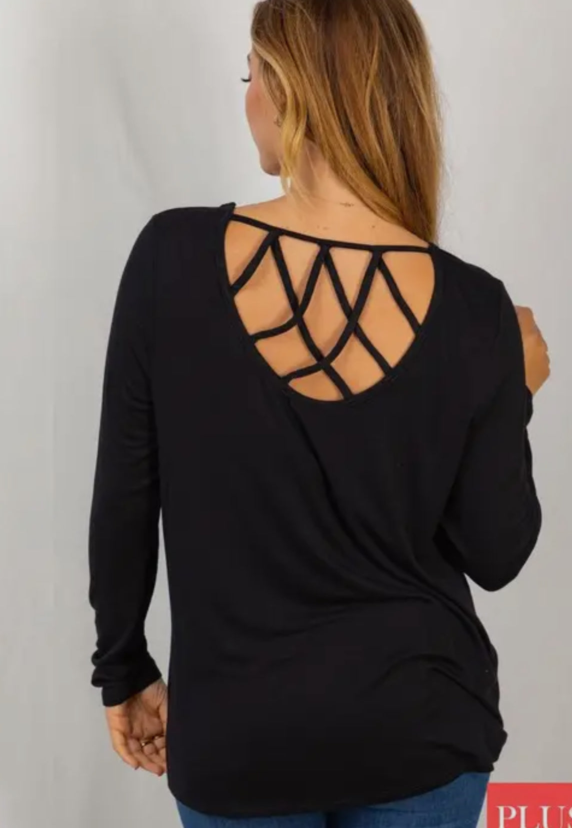 Plus long sleeve lattice back