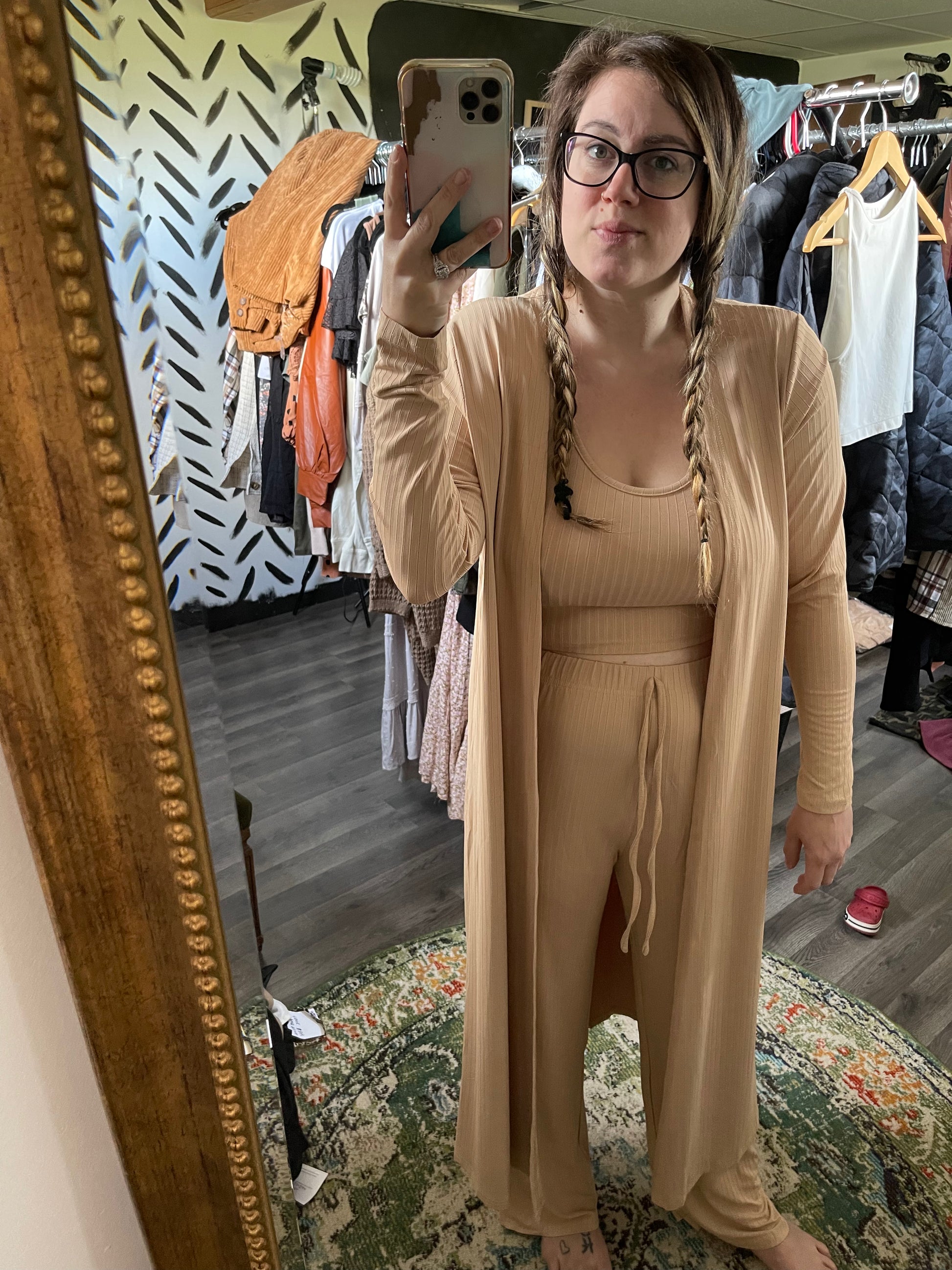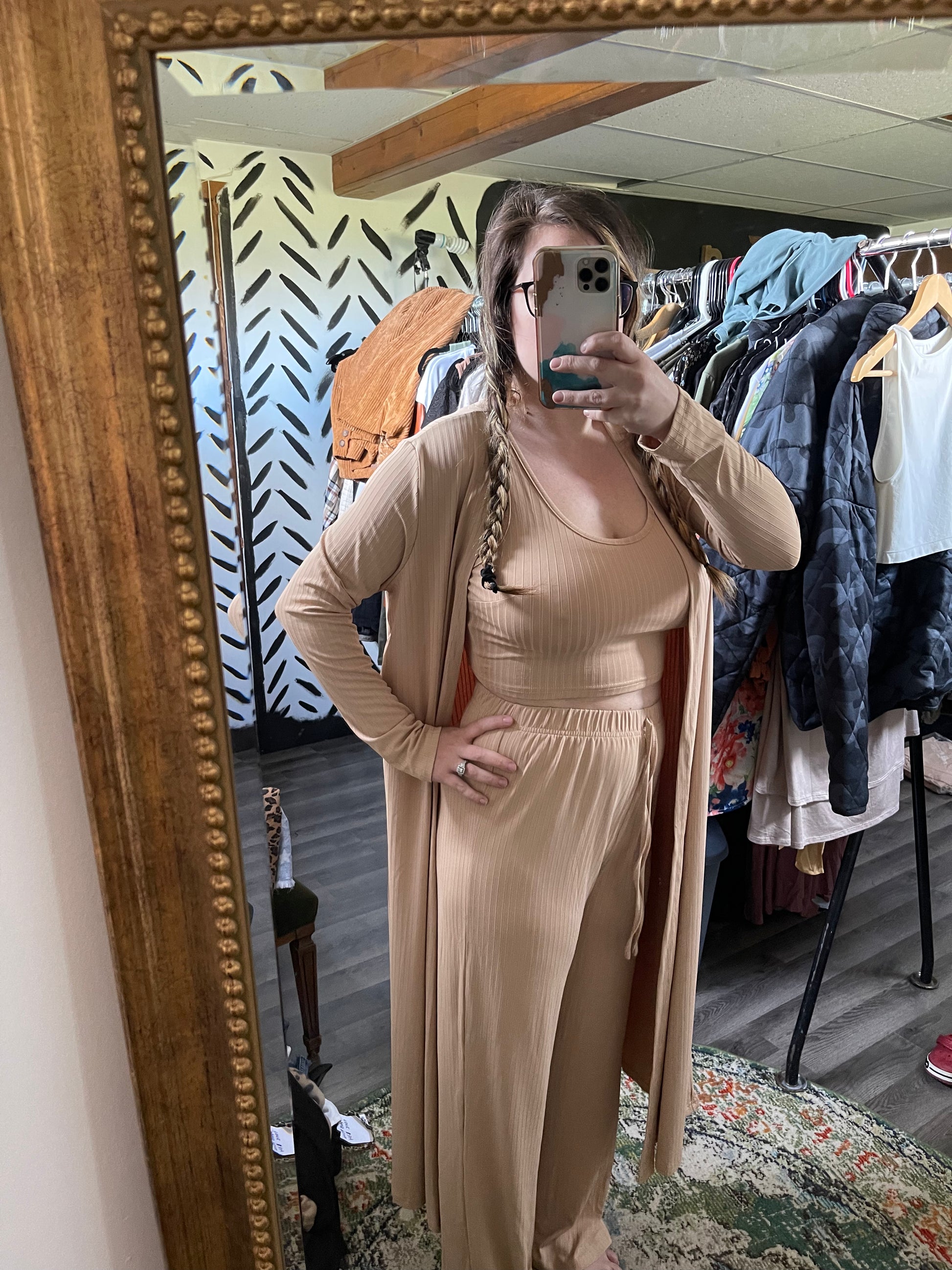 The Linden is your one stop shop for luxury mix & matching! Feel like a queen when you put this fabric on your skin, and then feel like a BOSS when you realize you have endless possibilities of how to wear your new 3 piece set. Wear all together at home for a fierce yet cozy vibe or pair your fave piece with a completely new look. You get the tank crop top, high waist pants, &&& the duster! Ultra stretchy, smooth, and cooling ribbed fabric perfect for spring and summer.