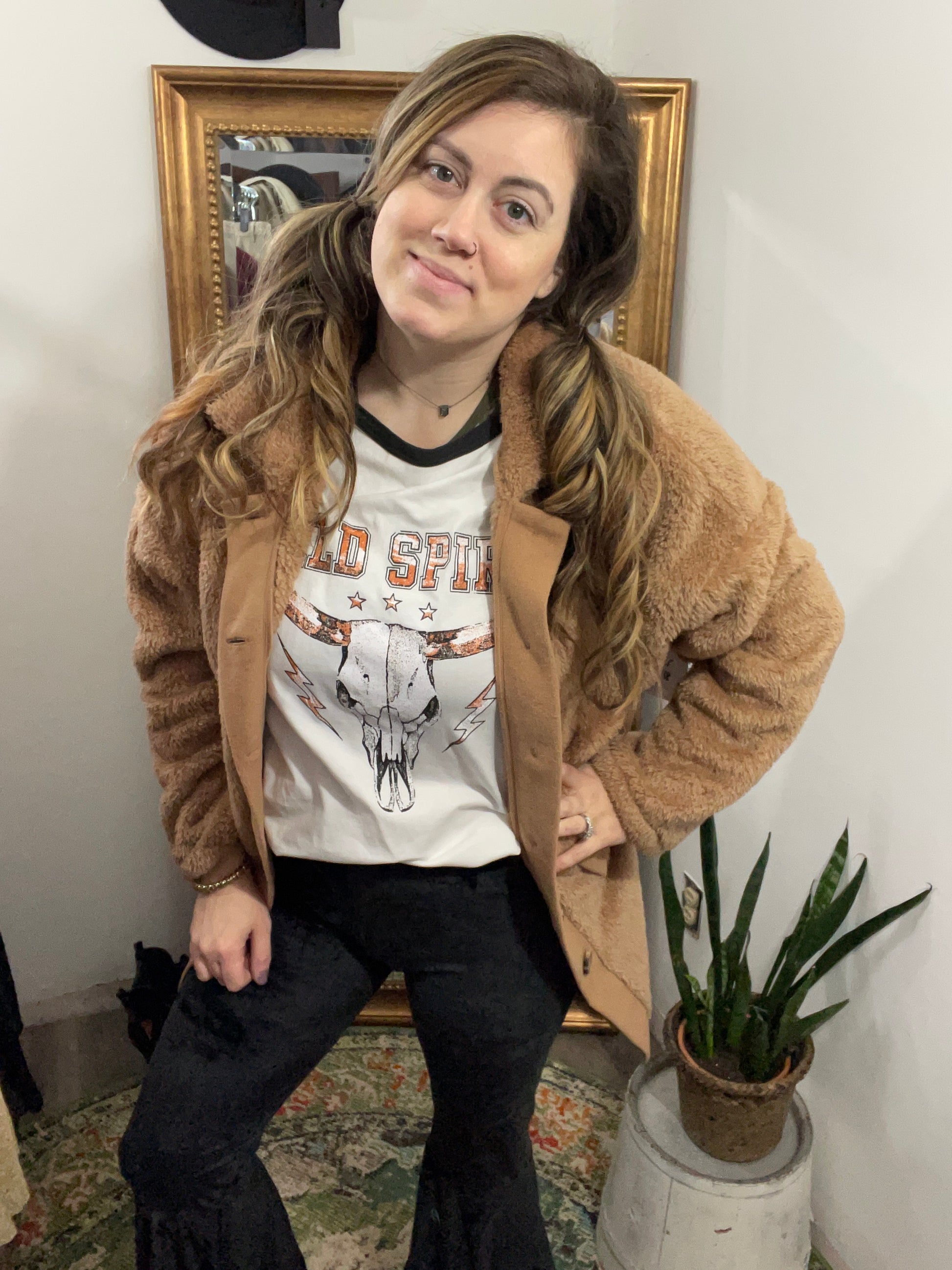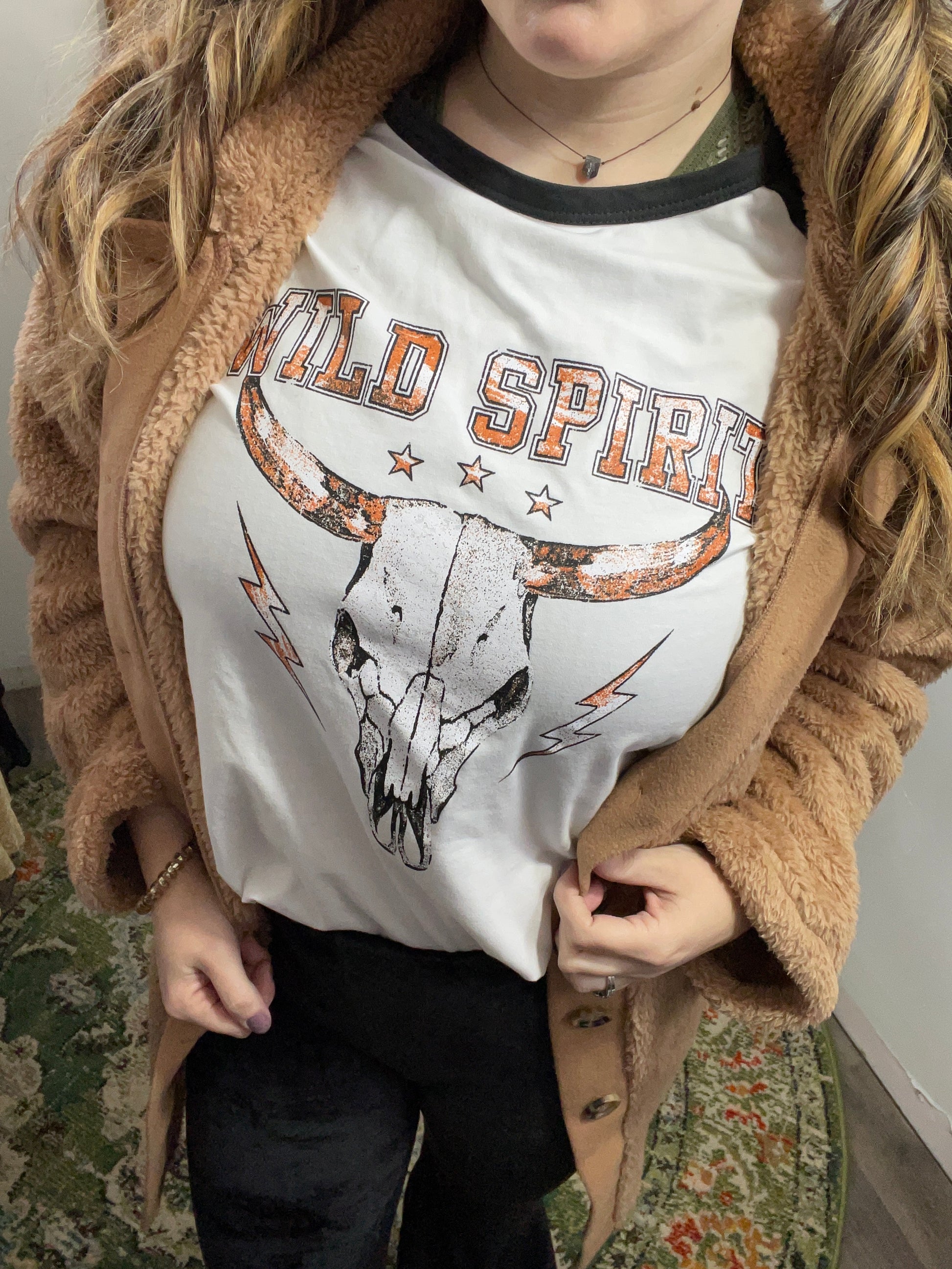WILD SPIRIT LONGHORN VINTAGE GRAPHIC, CLASSIC REG. FIT, COTTON RAGLAN, SHORT SLEEVE TEE