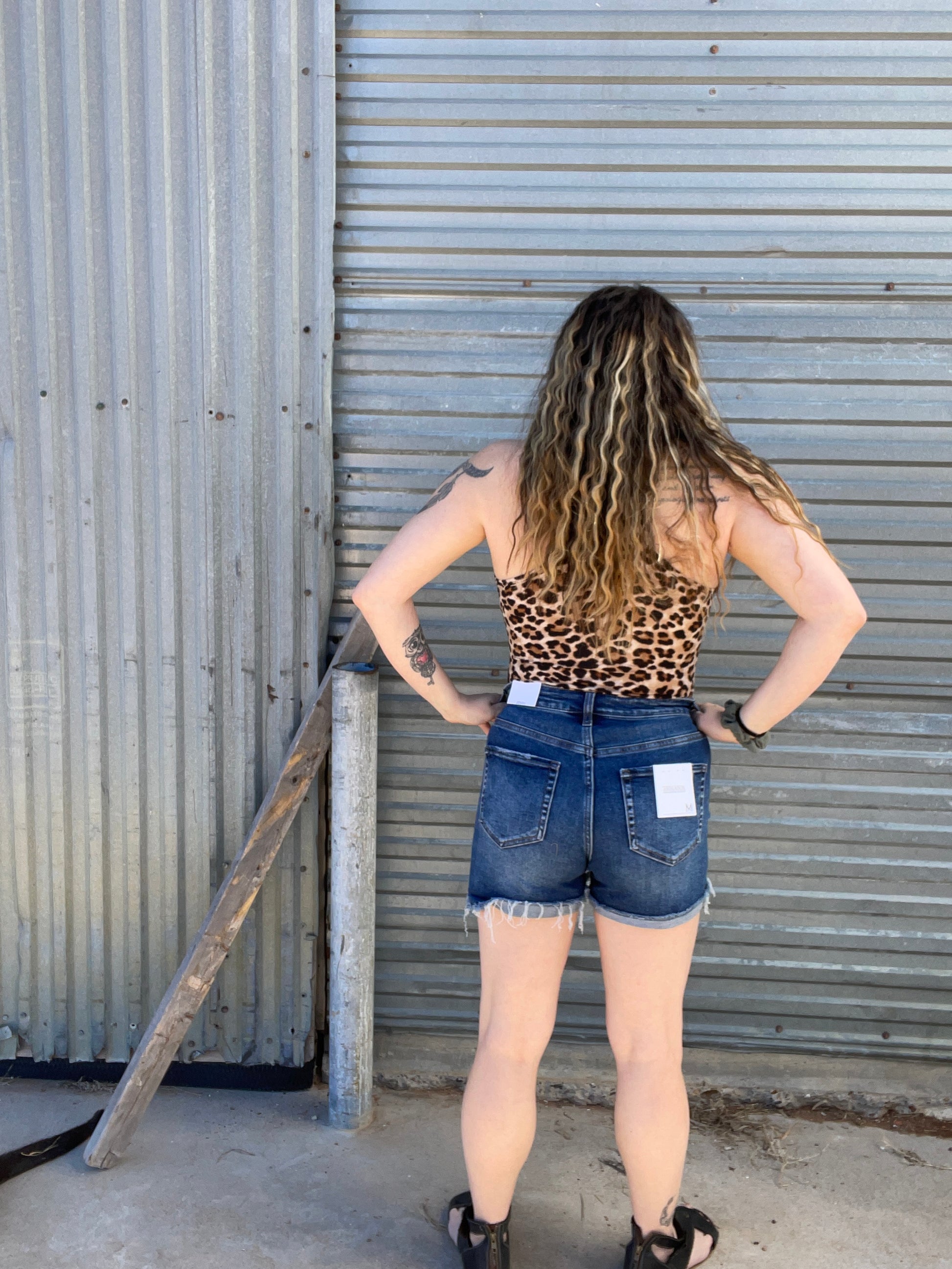 Brushed dty leopard racer back tank bodysuit.